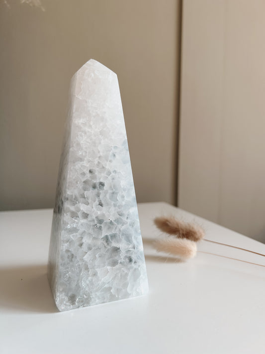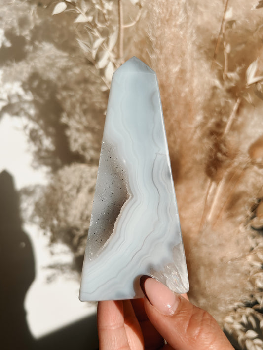 White & Blue Lace Agate Obelisk