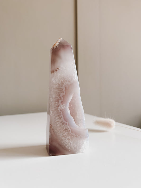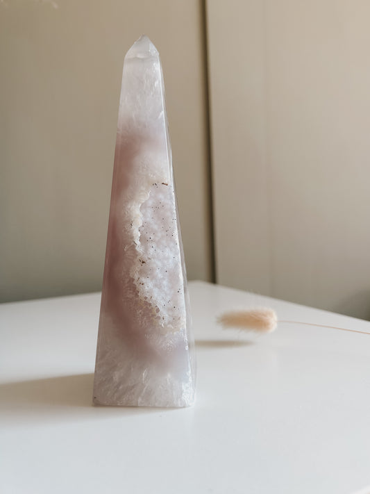 Sold outWhite & Mauve Agate Obelisk