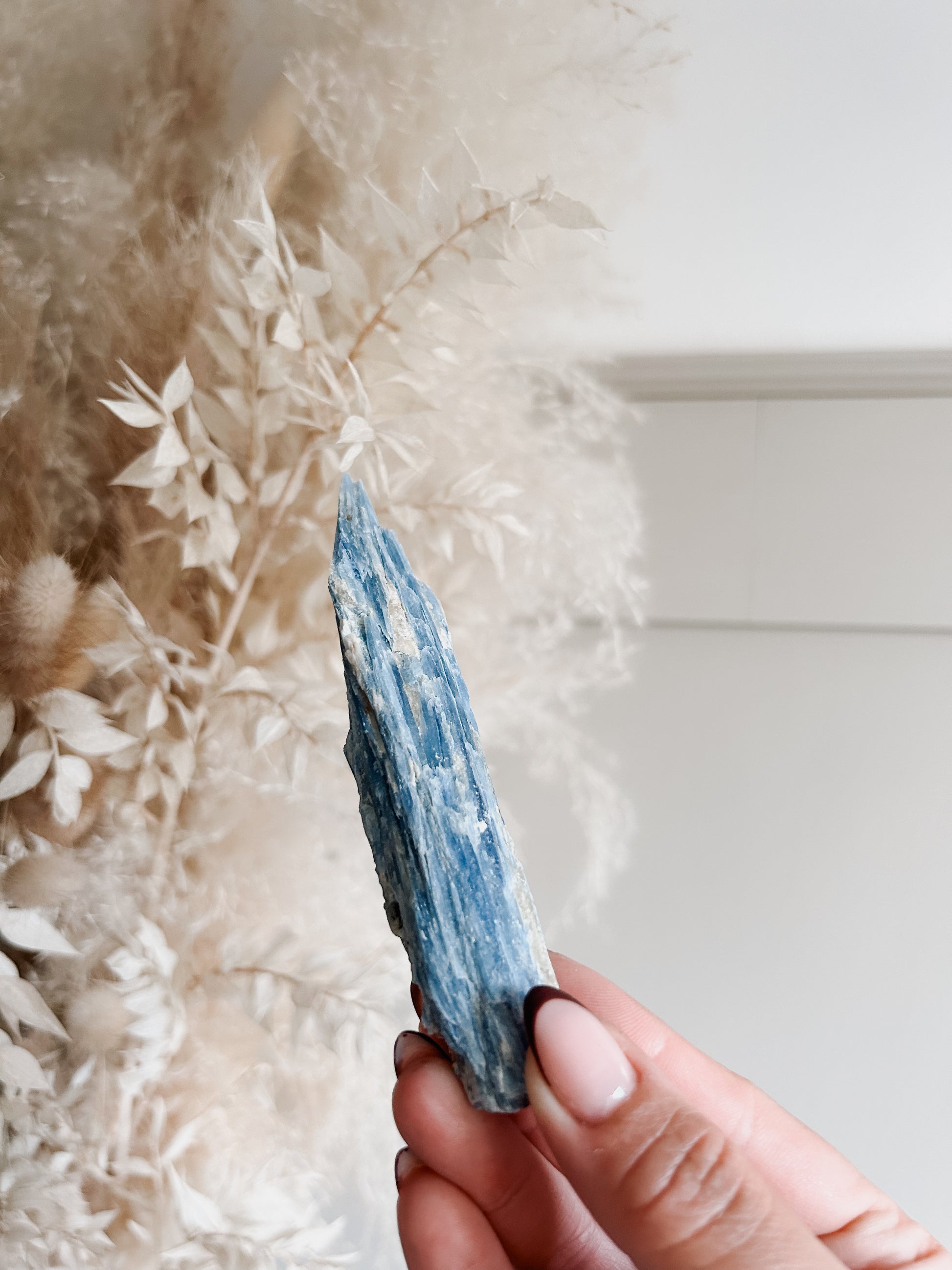 NB: Please be mindful with Kyanite, due to its natural properties it has the ability to break easily and/or splinter. Handle with care and be mindful of pieces falling away from the main structure. Due to this, we would recommend you keep this crystal away from pets and small children and take no liability for damage and/or harm caused.